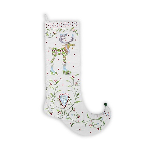 Patience Brewster 28 White And Green Reindeer Embroidered Christmas Stocking Target